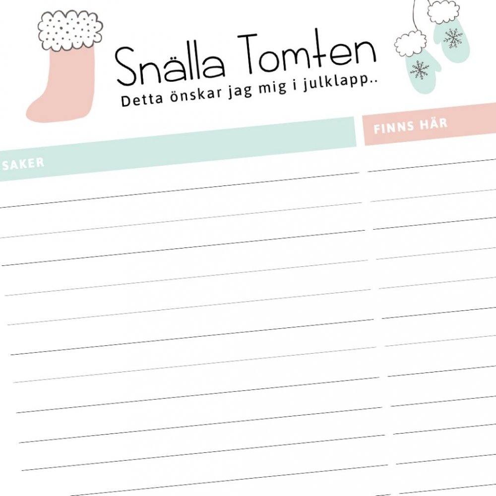 La barna skrive sin egen personlige ønskeliste. Trykt på A4, helst matt og litt tykkere papir for best resultat.