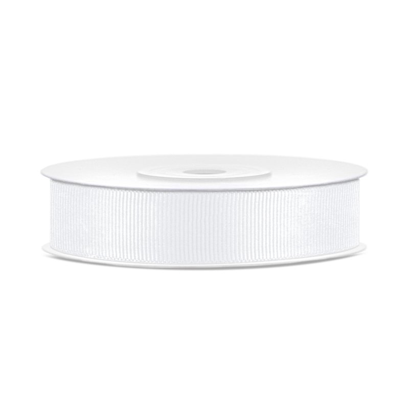 Rull med 25 m hvitt grosgrain-bånd. Båndet er 15 mm bredt.