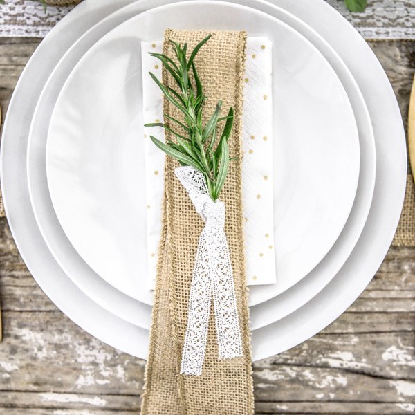 Jutebånd - perfekt til bryllupsdekorasjoner.