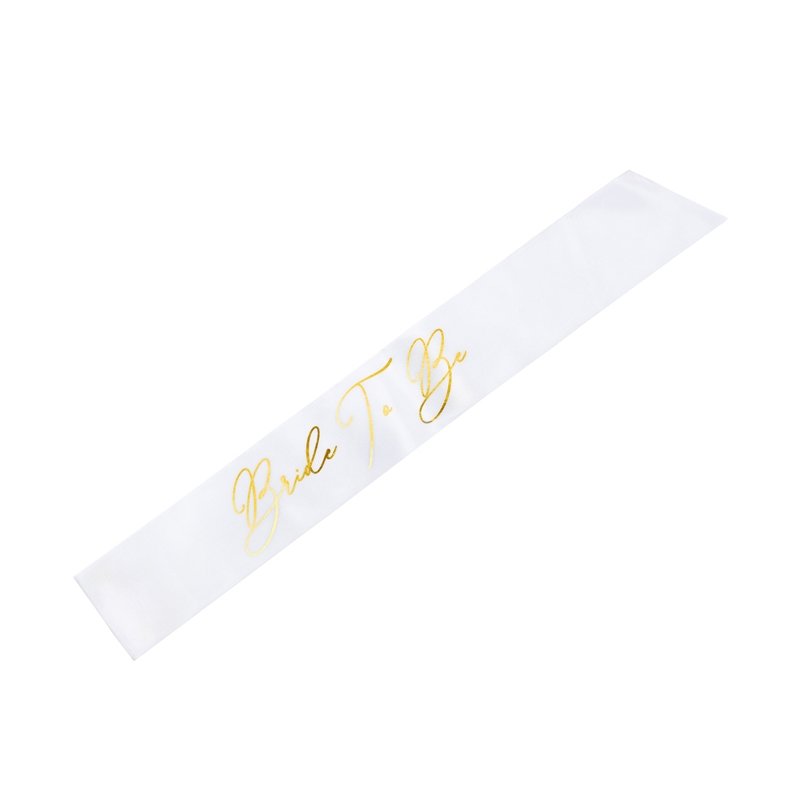 Bånd i hvit sateng, så fint til bruden på utdrikningslaget.