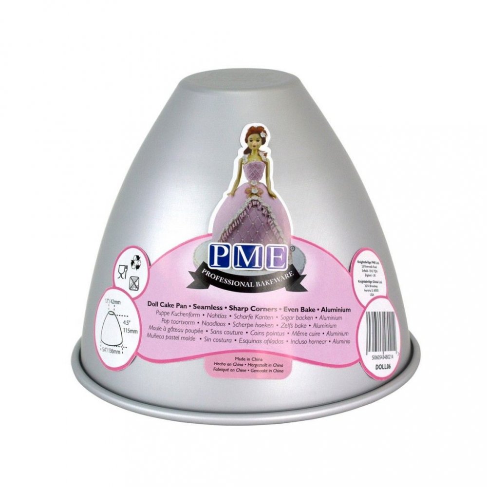 Liten stekeform i aluminium - Hjelper deg med å lage den perfekte kjolen til en dukkekake. Kombiner enten med en dukke du har (f.eks. en Barbie-dukke), eller kombiner med våre søte dukker som du deretter putter i kaken.