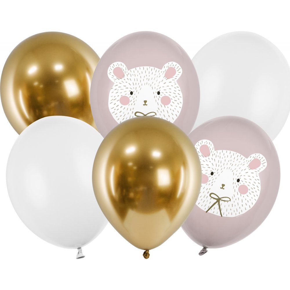 6-pakning ballongmiks, perfekt som ballongbukett. Match med resten av våre teddy-tema-artikler.