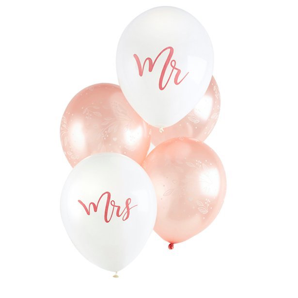 Ballonger - Herr og Fru - Hvit/Roségull - 5-pakning