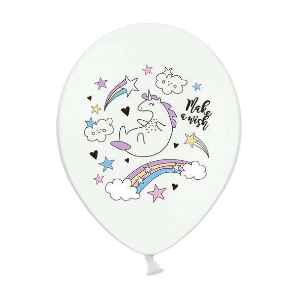 Ballonger - Make a wish - Hvite med enhjørningsmønster - 6-pakning