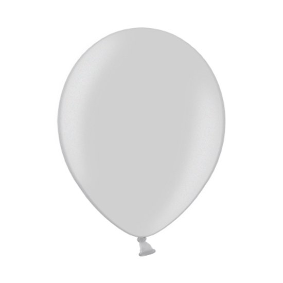 Sølvfargede ballonger med metallisk glans. Ballongene er omtrent 27 cm i diameter når de er oppblåst og er laget...