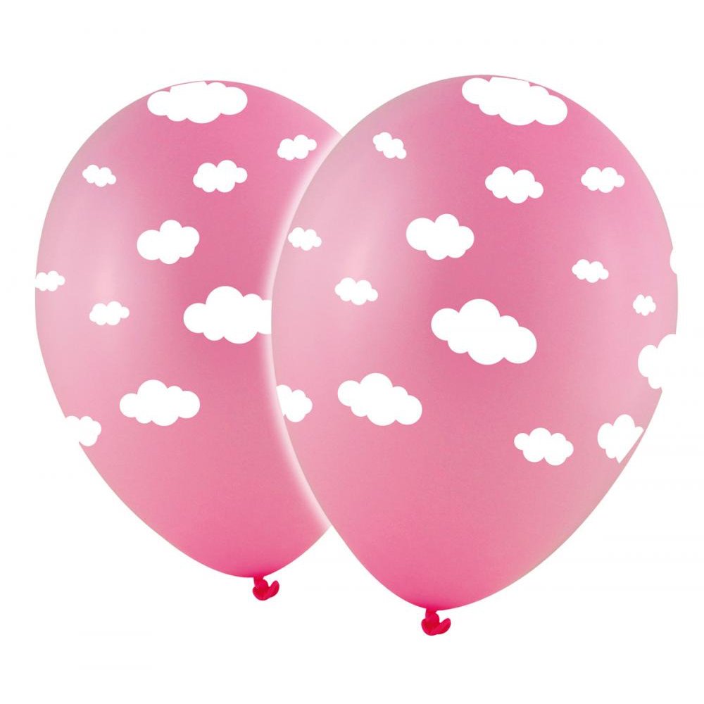 Ballonger - Rosa med hvite skyer - 10-pakning