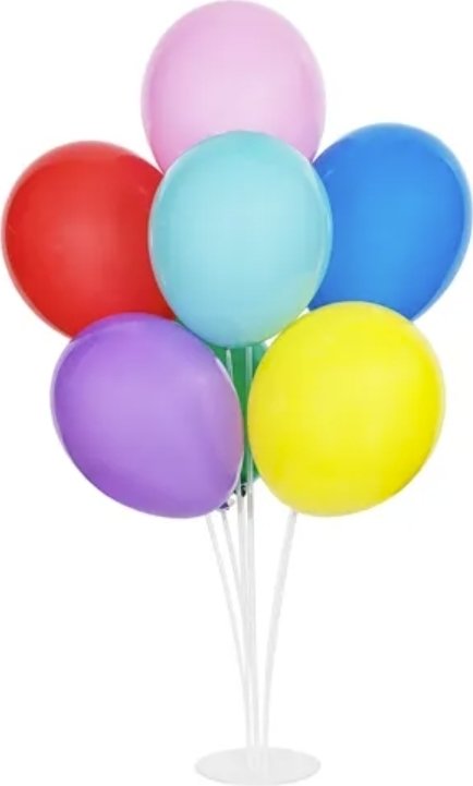 Ballongstativ med 7 innebygde ballongpinner lar deg enkelt lage en fin ballongbukett uten helium. Ser flott ut som borddekorasjon, for eksempel.