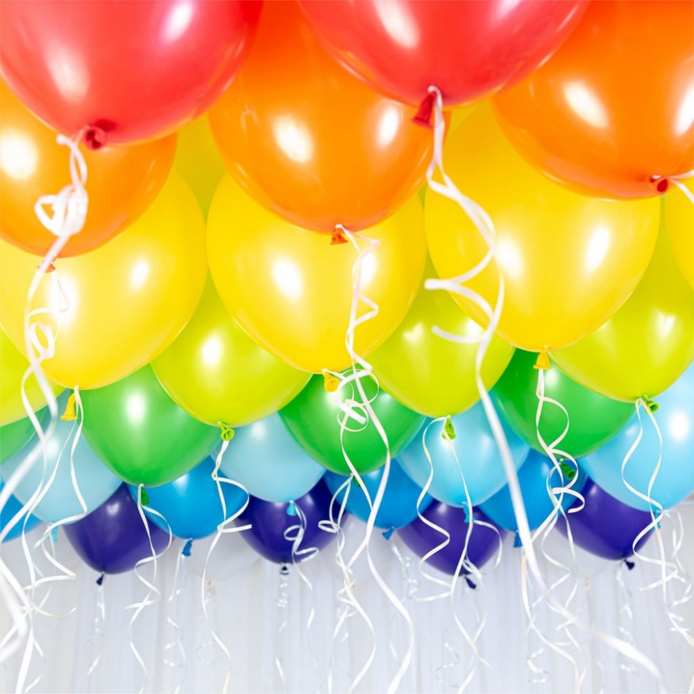 Flott sett for å dekorere taket med ballonger - skaper en utrolig effekt i et rom. Hvis du vil at ballongene skal sveve av seg selv, fyll dem med helium - ellers fester du ballongene til taket med de medfølgende limprikkene.