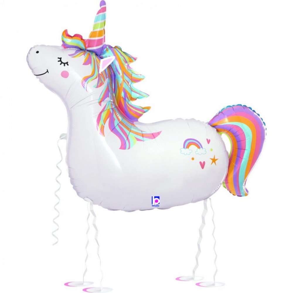 Så nydelig folieballong formet som en enhjørning. Ballongvennene våre har vekter i potene/føttene sine som gjør at de kan gå bak deg.