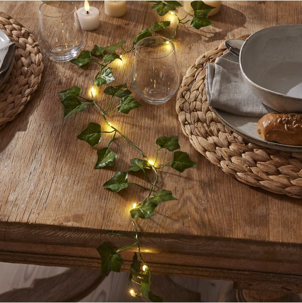 En flott eføygirlander med 20 LED-lys! Virkelig fantastisk å dekke bordet og pynte med.