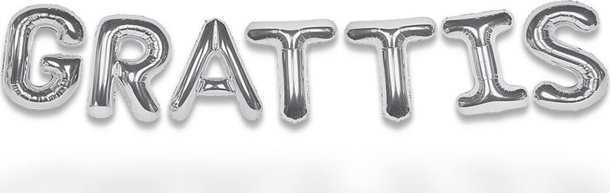 Nydelig ballonggirlander i sølv som danner ordet GRATULERER.