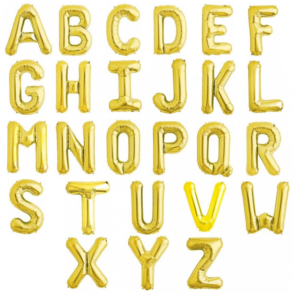 35 cm store, gullfargede bokstavballonger. Velg bokstaven din i rullegardinlisten.Ballongene er ca.