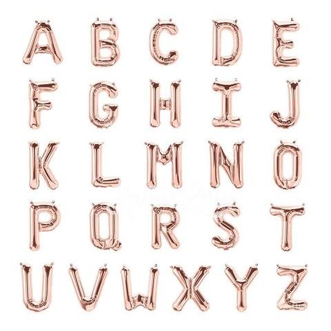 35 cm store bokstavballonger i rosa gull. Velg bokstaven din i rullegardinlisten. Også tilgjengelig