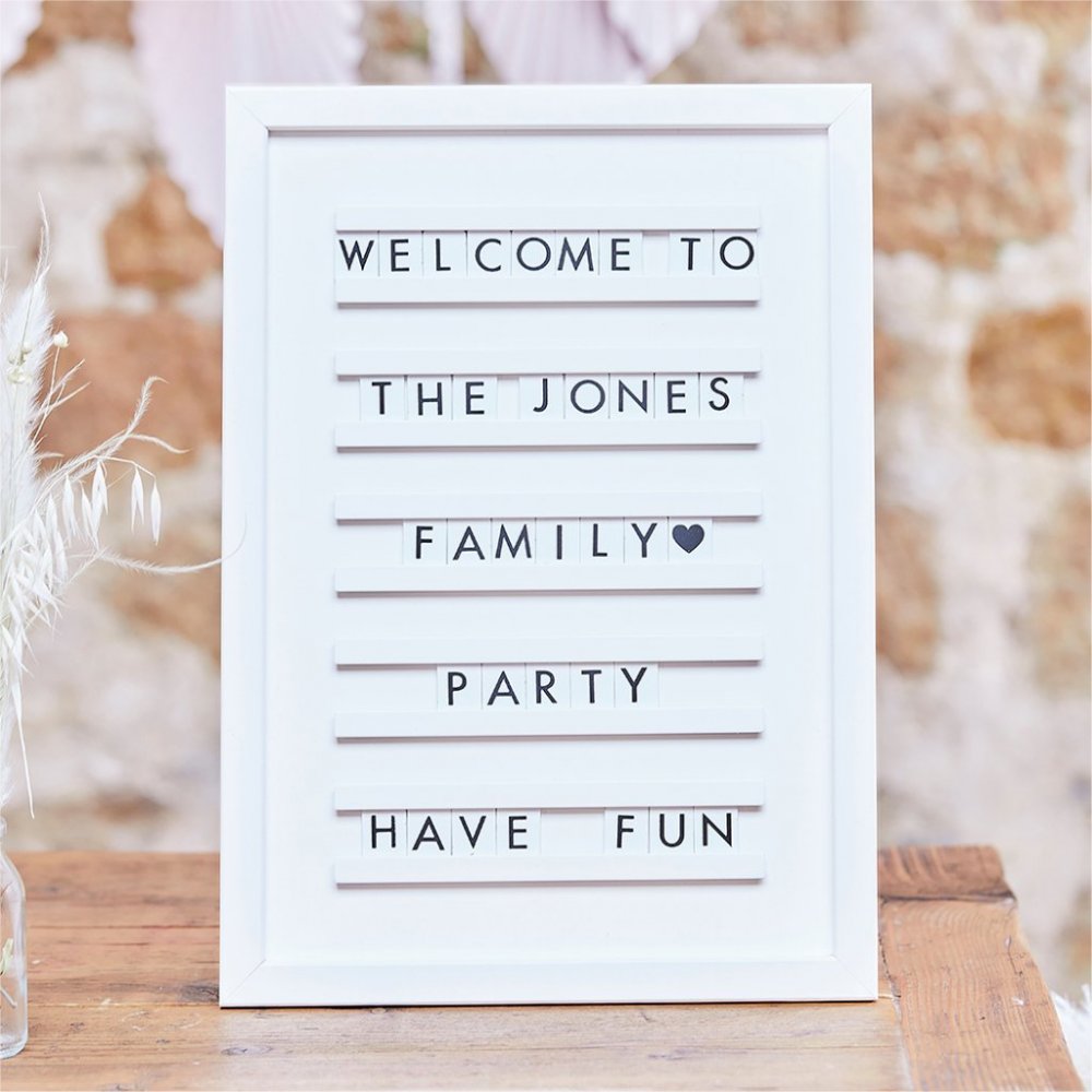Denne utrolig vakre bokstavtavlen er perfekt for å informere gjestene dine om viktig informasjon, men vil også se utrolig vakker ut i hjemmet ditt. Tilpass teksten på tavlen slik du ønsker.