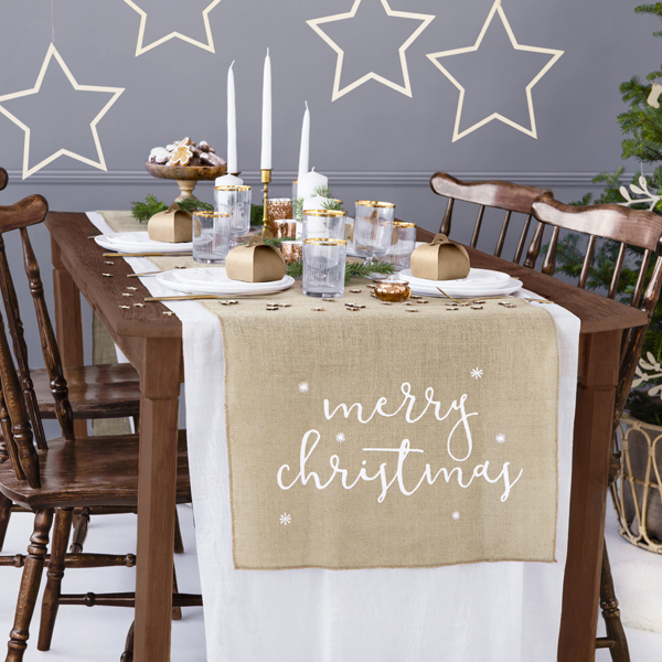 Bordkort fra juletemaet «Gulljul» i hvitt og gull.