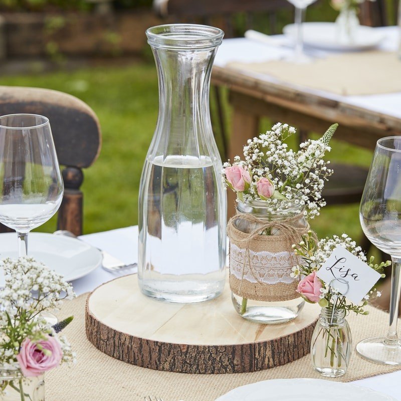 Borddekorasjon laget av en tykkere tresirkel - superfin å vise frem som et «midtpunkt» på bordene.