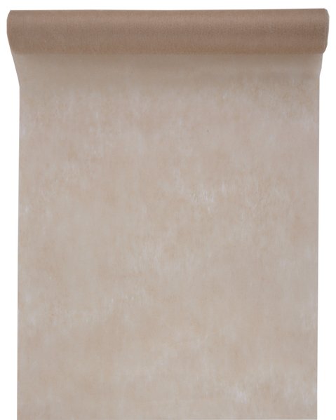 Beige bordløper på rull i ikke-vowen-materiale. Løperen er 30 cm bred og 10 meter lang.