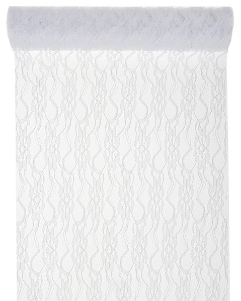 Bordløper i hvit blonde. Løperen er 30 cm bred og 5 meter lang.