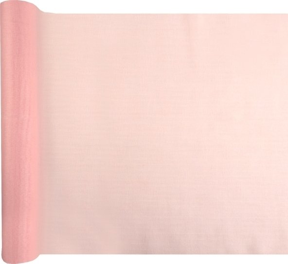 Bordløper i lyserosa muslinstoff. 5 meter lang, 36 cm bred.
