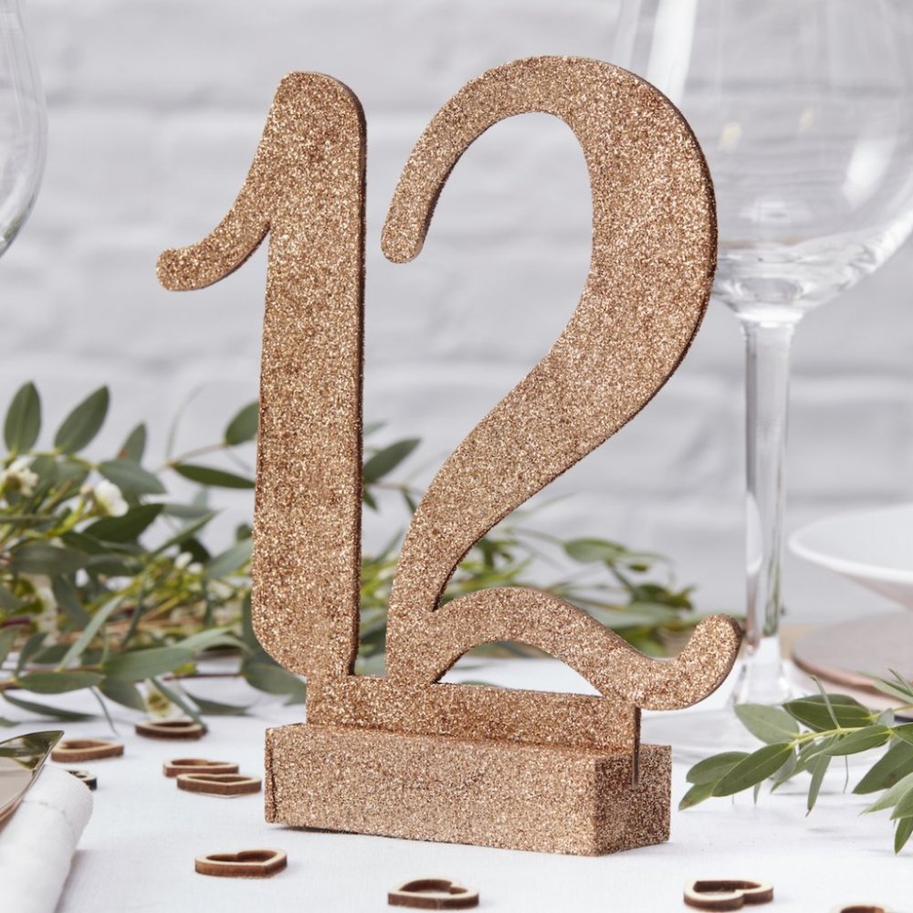 Nummerer bordene på festen din med stil! Tretall i glitrende roségull setter prikken over i-en på borddekningen.