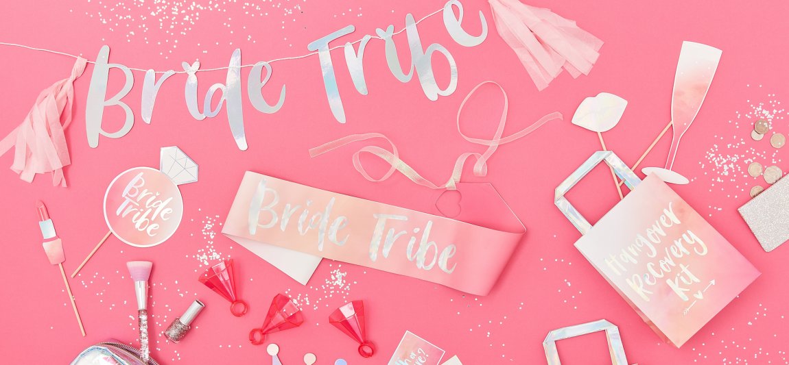 6-pakning med ballonger i lys rosa og hvitt med teksten «Team Bride».