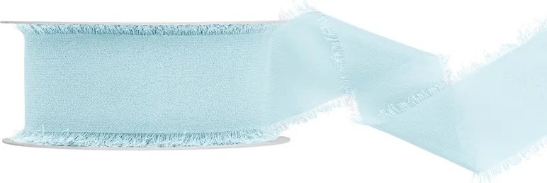 Veldig fint lyseblått chiffongbånd på rull. Tapen er 40 mm bred og rullen består av 10 meter.