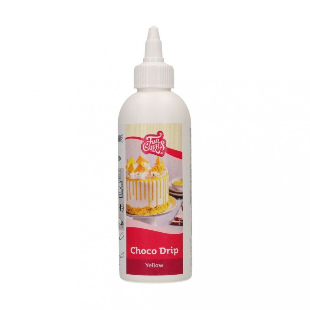 FunCakes Choco Drip i gul er en deilig drypp med sjokoladesmak og en skinnende farge. Perfekt til å dekorere kaker eller til å legge til gulldetaljer i dekorasjonene dine.