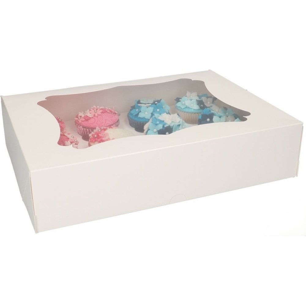 Skal du gi bort vakkert dekorerte cupcakes i gave? Pakk dem i denne fine hvite esken! Esken har et vindu på toppen. Perfekt for pakking av 12 eller 24 cupcakes med de medfølgende innleggene. Størrelse: ca. 33 x 24 x 7,5 cm.