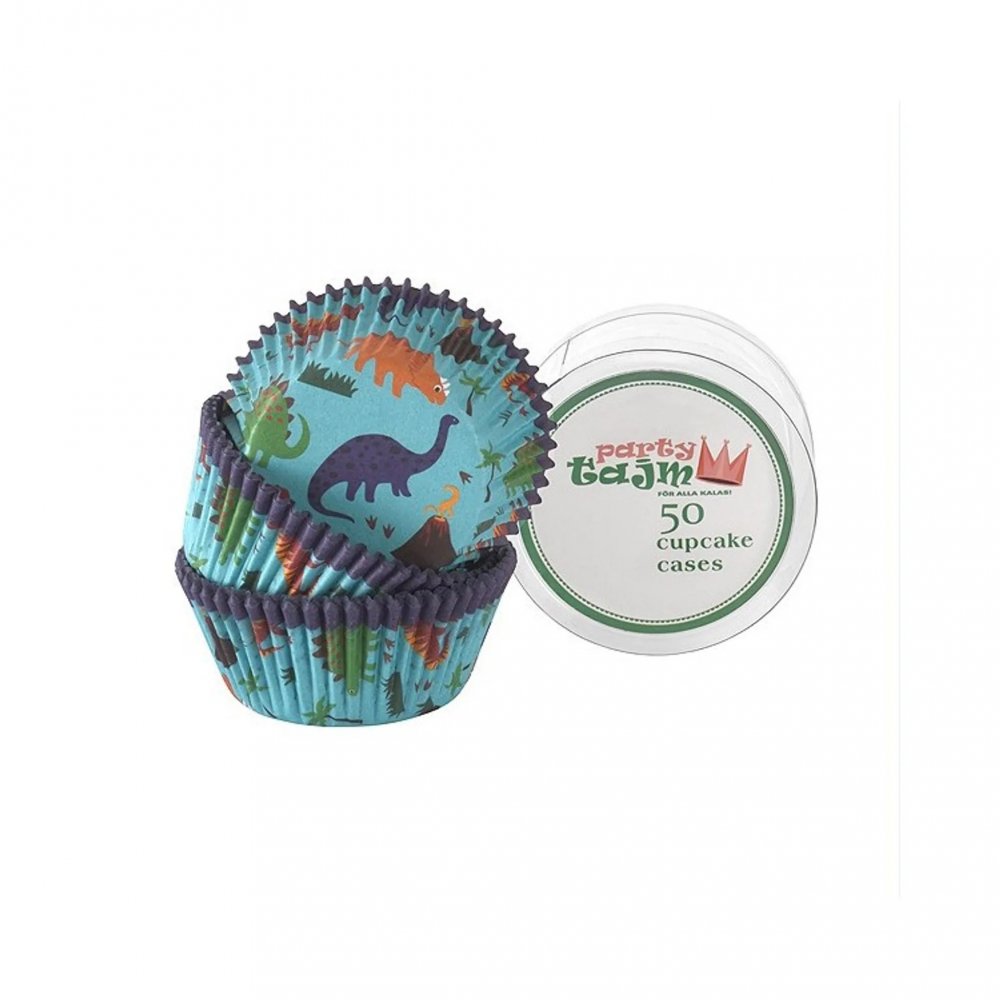 50-pakning med cupcake-former med dinosaurer.