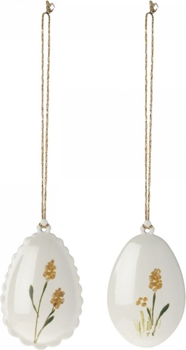Påskeegg fra Maileg i metall. Eggene har håndmalte detaljer og finnes i to design med forskjellige kanter.