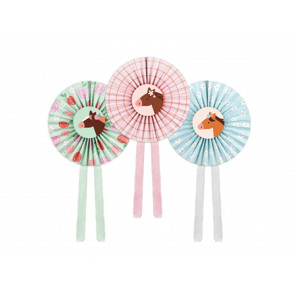 Vakre dekorative rosetter i hestetema for å krydre festen. Perfekt til temafest eller bursdagsfest!