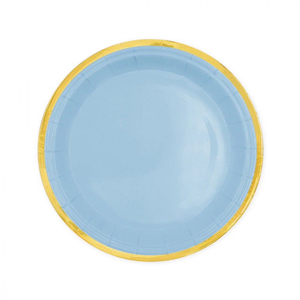 Supersøte desserttallerkener i blått med gullkant. Perfekt for alle typer festlige anledninger.