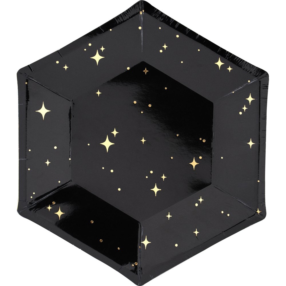 Desserttallerkener - Sparkle - Svart/Gull - 6-pakning