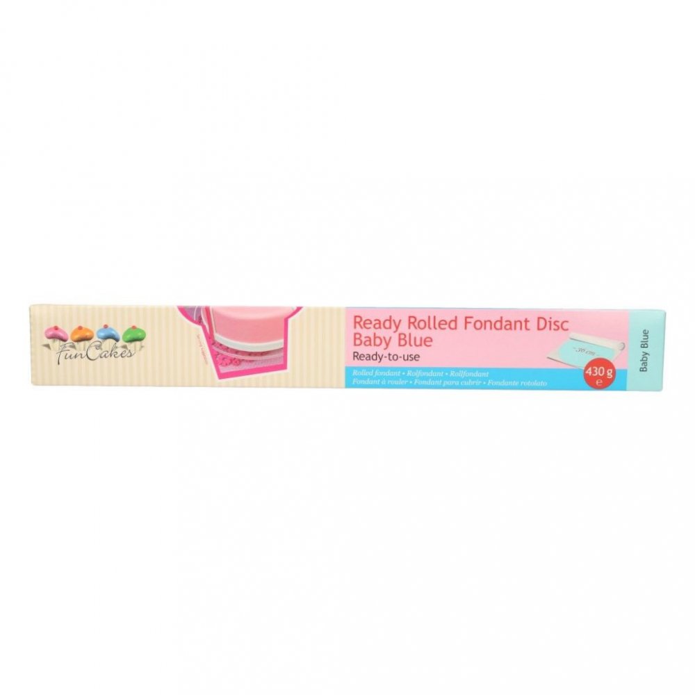 Forhåndsrullet sukkerpasta i lyseblå - den enkleste måten å dekke en kake på! Denne fondantskiven med en deilig vaniljesmak er allerede rullet ut og kan brukes direkte på kaken!