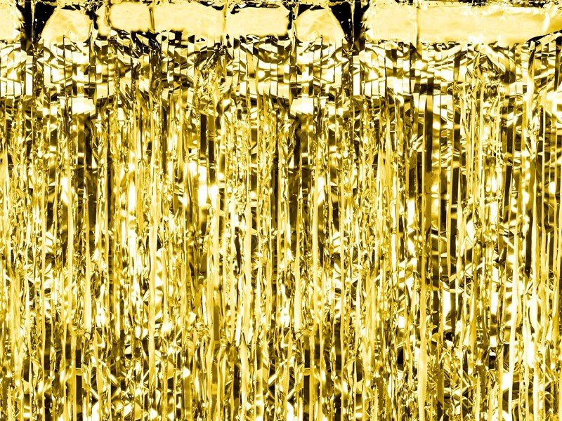 Gyllent festdraperi, 1 meter bredt, 2 meter langt. Laget av metallfolie, som gir en fin glans!
