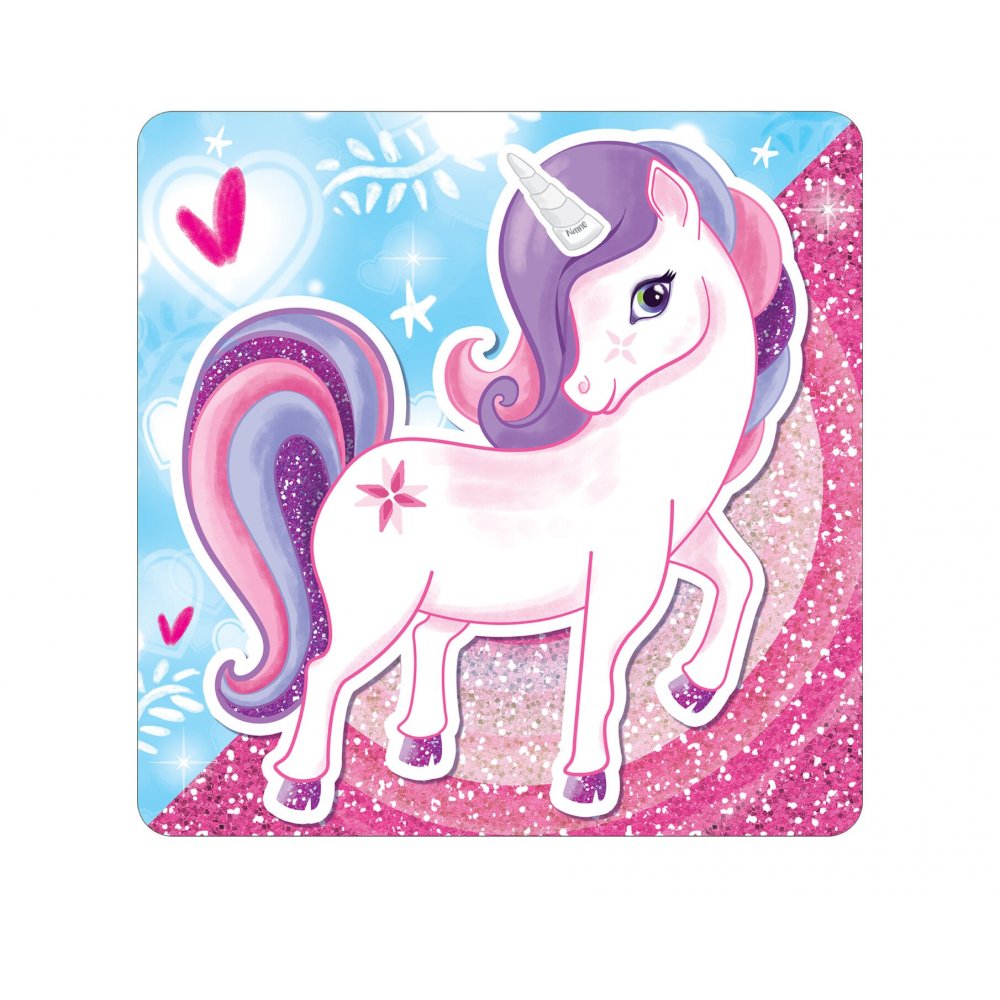 Et skikkelig morsomt selskapsspill hvor du skal sette hornet på enhjørningen! Komplett sett med plakater, 12 klistremerker formet som enhjørningshorn og en bind for øynene. Passer for opptil 12 barn!