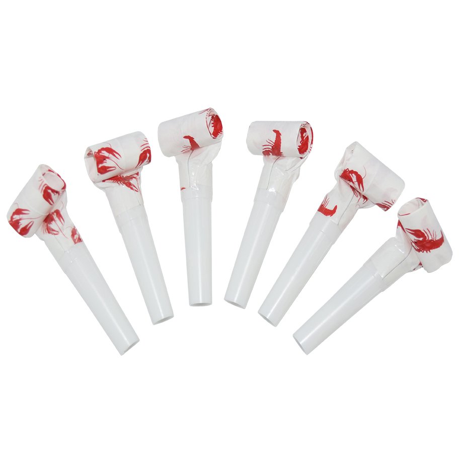 6-pakning med hvite partyhorn med kreps på, så gøy til krepsfatet.