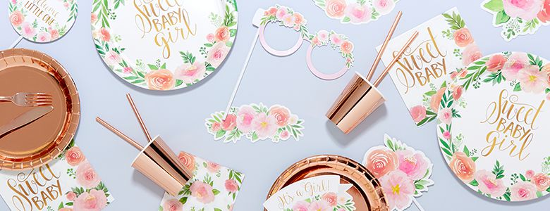 6-pakning med ballonger i 2 forskjellige rosanyanser med teksten «Søt babyjente».