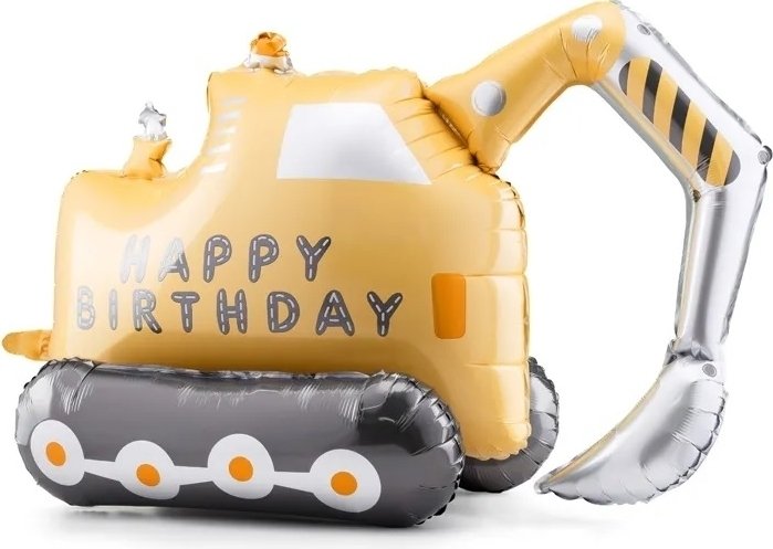 Matt folieballong formet som en gravemaskin. Kan blåses opp med helium eller luft.