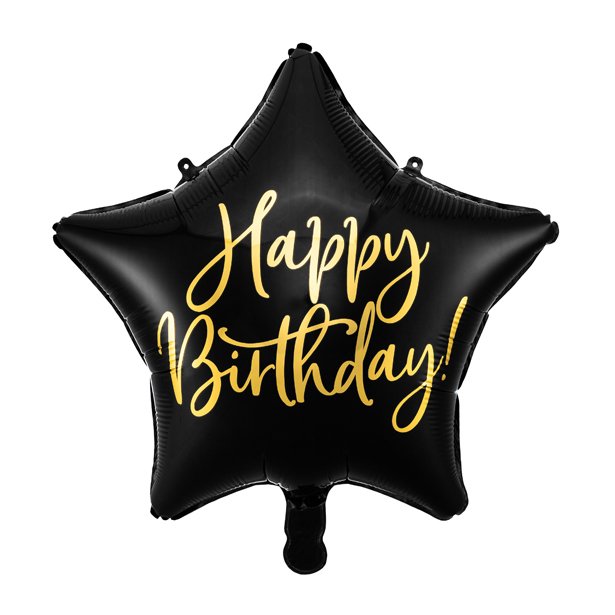 Folieballong - Stjerne - Gratulerer med dagen - Svart/Gull