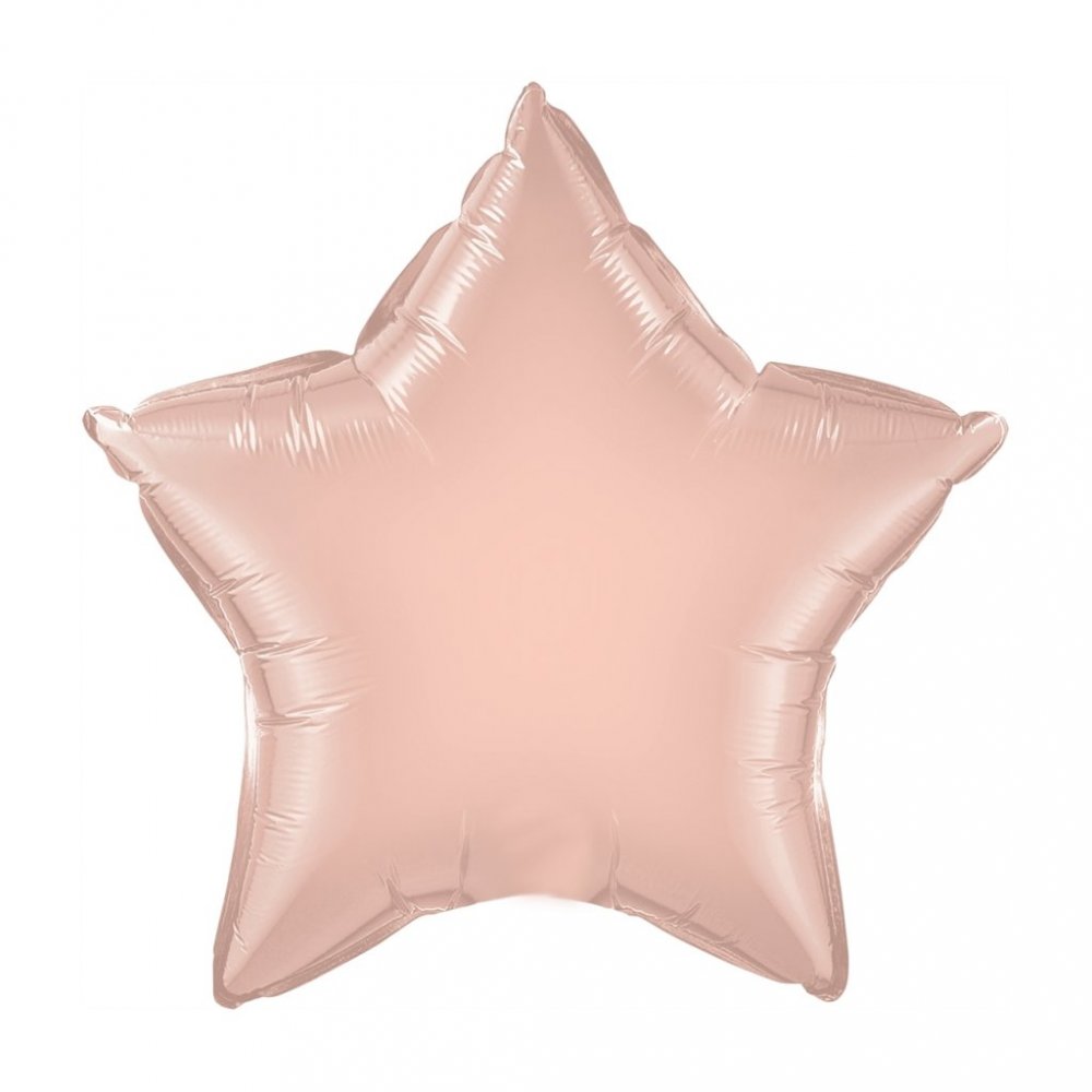 Folieballong formet som en stjerne i roségull. Ballongen er omtrent 51 cm i diameter når den er oppblåst.