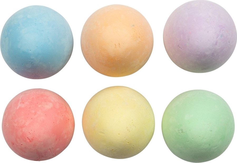 Eggformede gatefargestifter i 6 forskjellige pastellfarger.