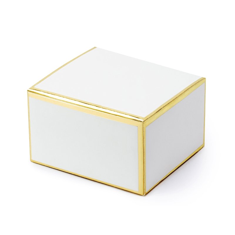 10-pakning med hvite gaveesker med gulldetaljer. Så vakkert til bryllupsborddekking med en liten gave inni.