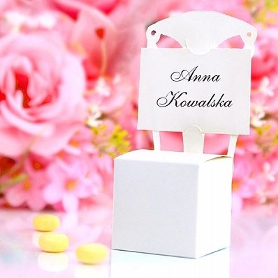 10-pakning med gaveesker formet som en stol med et tilhørende plasseringskort som kan festes.