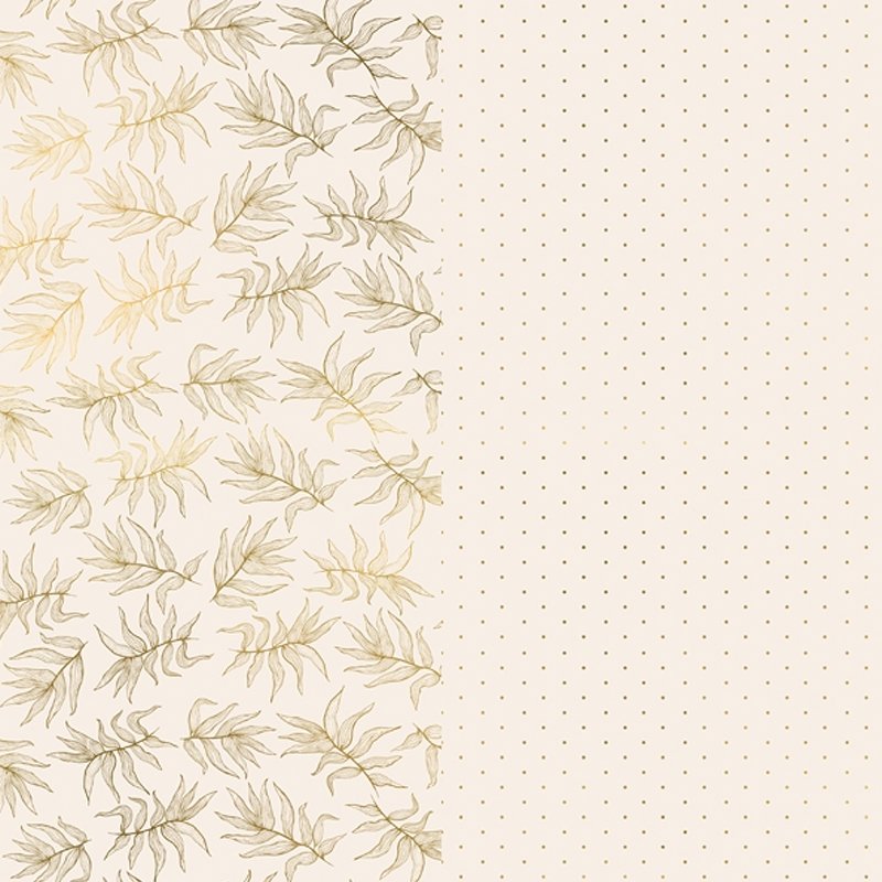 2-pakning med gavepapir i rosa og gull. Den ene gaveinnpakningen er lyserosa med gullprikker, den andre gaveinnpakningen er lyserosa med gullplanter.