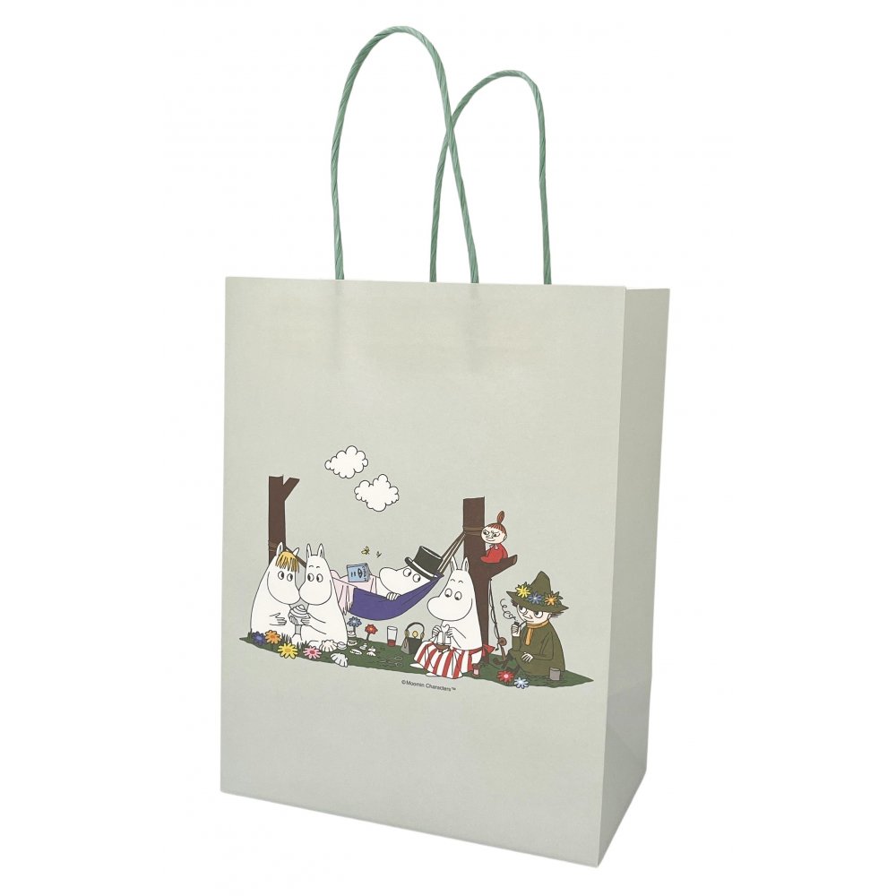 Denne grønne papirgaveposen er utsmykket med det elskede Mummi-motivet og er perfekt for å gi bort små gaver med stil. Vesken er mellomstor og passer perfekt til våre andre Mummi-produkter, noe som gjør den til et perfekt supplement for alle Mummi-fans.