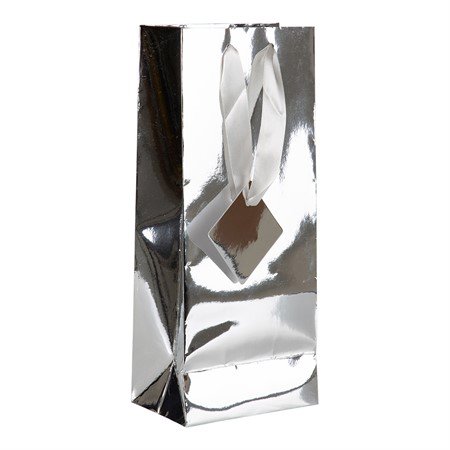 Superfin gavepose i sølvmetallic, perfekt størrelse til for eksempel vin- eller musserende vinflasker.