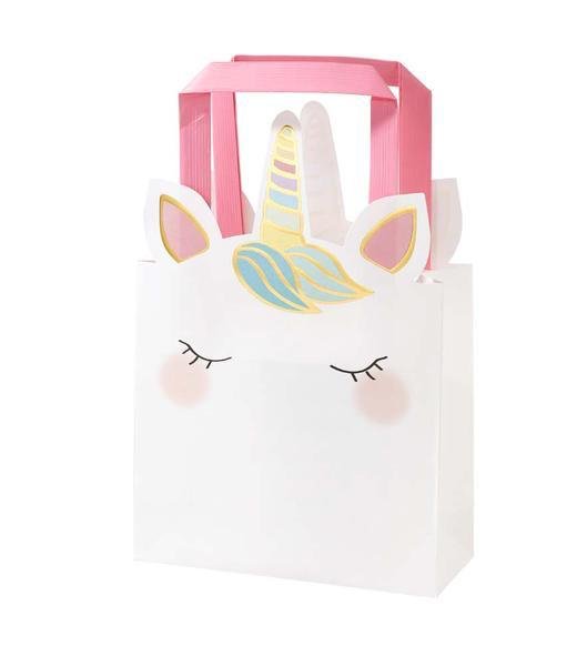6-pakning med gaveposer med vårt enhjørningansikt-tema.