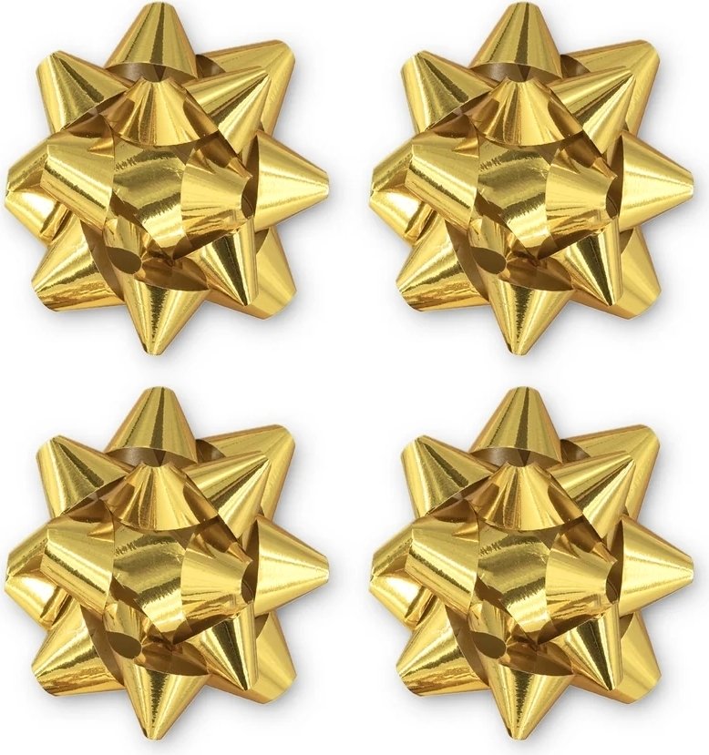 4 pakkesløyfer i gullmetallic - gi pakkene dine det lille ekstra!