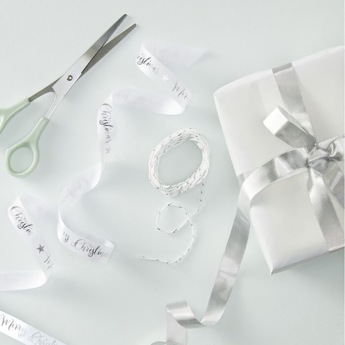Legg til litt ekstra til julegavene dine med disse festlige sølvgavebåndene.